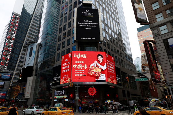 中国国民坚果品牌百草味亮相纽约时代广场,引发世界关注