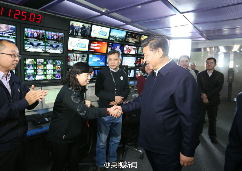 11时15分,习近平一行人出现在中央电视台。