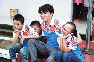 黄轩与孩子们在一起。