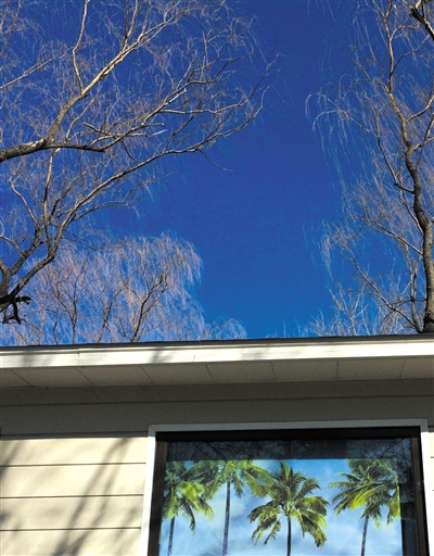 场景:北京的天空和橱窗海报上的天空同样蔚蓝。