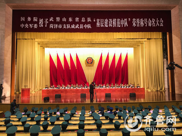 今天上午,国务院、中央军委授予武警山东省总队菏泽市支队成武县中队“基层建设模范中队”荣誉称号命名大会在山东会堂举行。