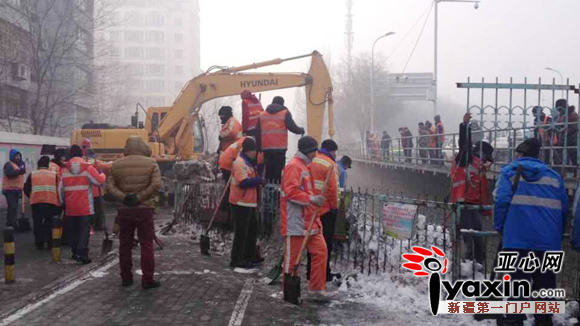 据了解,这200多人来自乌鲁木齐市沙依巴克区扬子江路片区管委会。今天(2月24日)早上10时30分,晨报全媒体记者在现场看到,200多名工作人员正在渠道里清理积雪、疏通渠道,还有一些机器在作业。