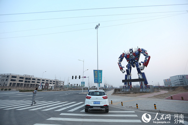 人民网郑州2月25日电 (霍亚平) 2月25日,河南省郑州中牟新区文通路附近的一十字路口现约20米高巨型“擎天柱”汽车人,附近村民称其是某楼盘开发商所建,已建成3年。