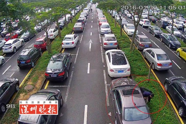 视频显示,1月30日上午11时01分,该名男子出现,他在深圳湾口岸D停车场走走看看,在一辆宝马车前停住后钻进车中,11时03分他从车中走出又跑向停车场另一侧,这时他发现另外一辆香槟色的宝马车,立即走向前打开副驾驶车门。该辆车正是报警人周小姐停放在车场的宝马车。
