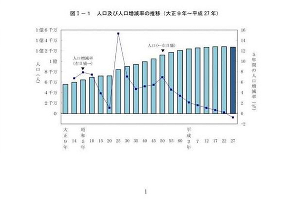 根据日本共同社报道,日本总务省2月26日公布相关数据,2015年日本总人口为1.2711亿人,较2010年上次调查时减少约94.7万人,降幅为0.7%。这是自1920年该项统计开始以来,日本人口数据首次出现负增长。虽然之前日本媒体曾多次报道日本人口的负增长情况,但均基于总务省和厚生劳动省的估算数据,此次是首次通过五年一度的人口详查数据对此予以证实。