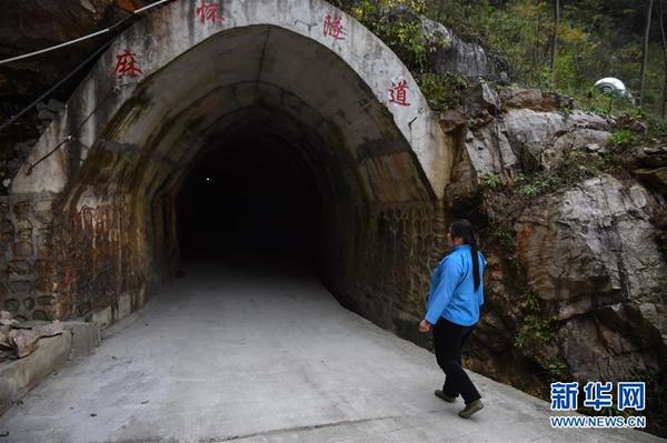 在贵州罗甸县董架乡麻怀村,邓迎香进入她率领村民“刨出来”的人工隧道(2015年12月15日摄)。 新华社记者欧东衢摄