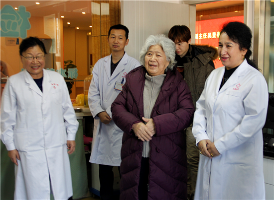 2月27日11时许,吴景春在工作人员的陪同下来到华夏医院,华夏医院王志琪院长、热孜万·阿布拉主席、周少云副院长、院办马国宏主任热情迎接。虽然吴景春今年已有80多岁的高龄,但步履稳健,精神矍铄。在和王院长交谈时她表示:“我这是第一次来新疆,但是我以前拍摄过关于西北地区妇幼工作者的宣传片,我在西藏刚解放时就去了西藏,所以我对少数民族地区有感情。”