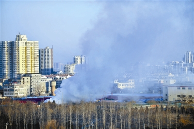 距现场几公里外都能看到浓烟 摄影/本报记者 陈志强