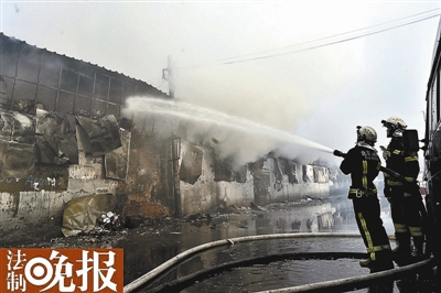 消防员赶到现场后,6时45分明火被扑灭 供图/《法制晚报》