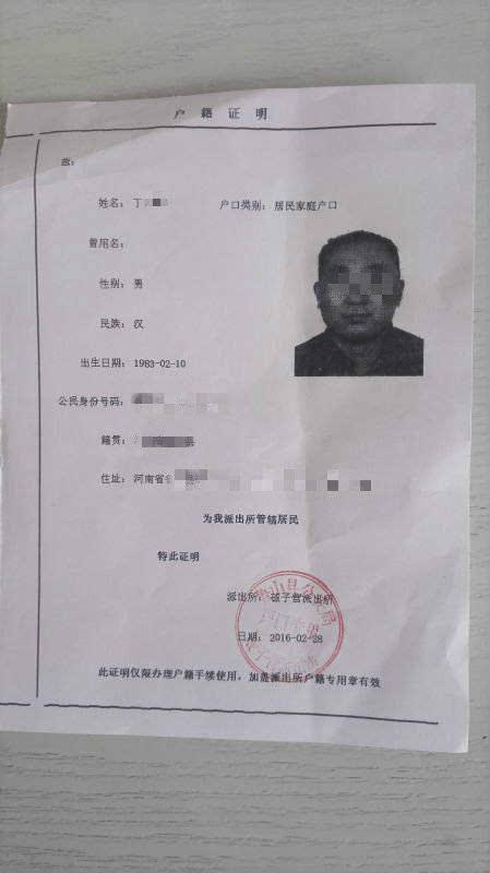 图为丁老师小儿子的户籍证明。