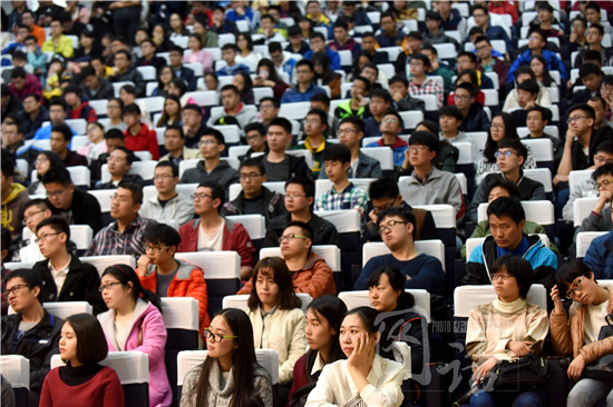 在研究过程中不免遇到困难,这位中年人把这段经历比作“通关打怪”:“就是你不要去想最终会不会成功,遇到问题处理问题,就像游戏通关一样,一关一关闯过,万一就打赢BOSS了呢?”此话一出,立刻引起不少学生的共鸣,台下掌声雷动。
