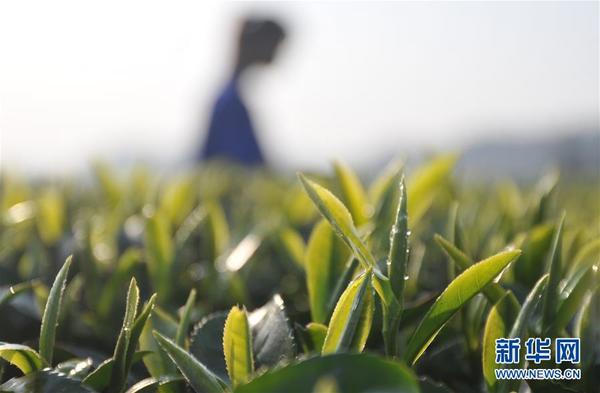广西三江侗族自治县八江镇布央村茶园里的茶叶冒出新芽(3月1日摄)。 新华社发(梁克川 摄)