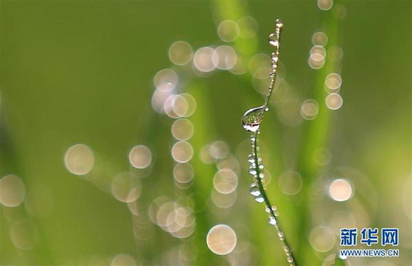这是3月1日清晨在南京古林公园拍摄的露珠。新华社发(王新 摄)