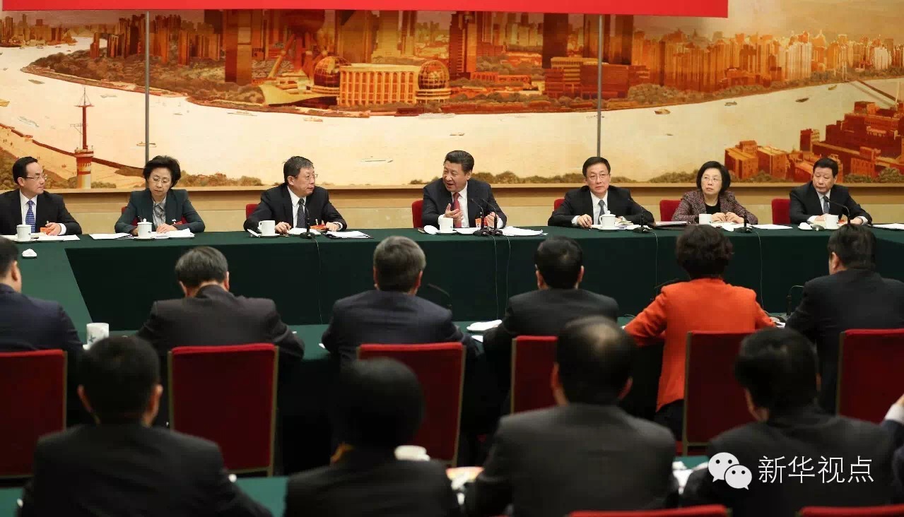 2015年3月4日,习近平看望出席全国政协十二届三次会议的民革、台盟、台联委员,听取委员们的意见和建议,并发表重要讲话。他指出,两岸同胞要总结两岸关系和平发展的经验,精心维护两岸关系和平发展成果。 新华社记者鞠鹏摄