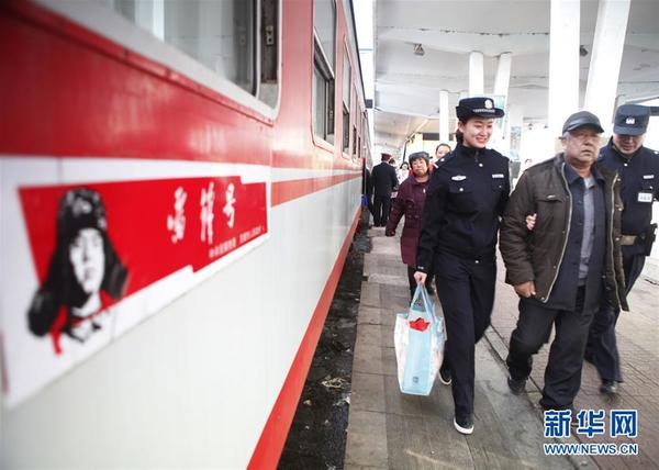 3月3日,通辽铁警志愿者搀扶老年旅客乘坐2590次“雷锋号”列车。