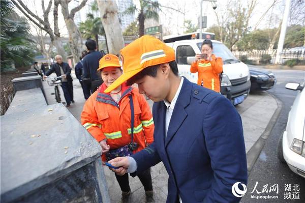 人民网武汉3月5日电 3月4日上午,武汉10名女公交司机首次与10名女环卫工换岗体验,在公交站台上向乘客和全体市民发出倡议,告别不文明陋习,争当文明市民。
