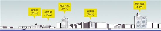 从清末到上世纪30年代,长堤陆续建起了多栋标志性建筑,如1914年的东亚大酒店、1916年的粤海关大楼、1922年的城外大新公司(后为南方大厦)、1925年的嘉南堂新亚大酒店、1937年的爱群大厦等,这些建筑不断开创广州建筑高度纪录,一并构成了该时期长堤一线丰富的城市天际轮廓线。