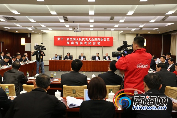 3月5日下午,海南代表团在住地举行全体会议,审议李克强总理所作的政府工作报告。南海网特派记者 李庆芳 摄