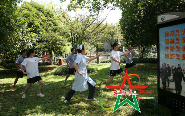 “辽宁舰”官兵学练养生操。高柱强 摄