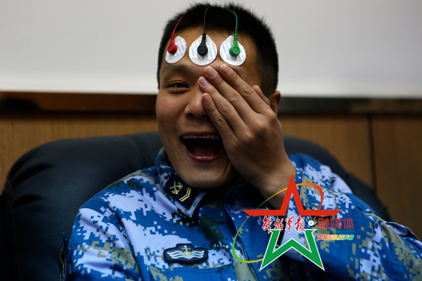 “深潜英雄”张恒银享受音乐疗养结束,露出了笑容。高柱强 摄