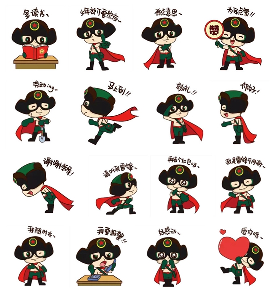 据悉,这款以雷锋为原型设计的表情包一共包含16种不同的表情,根据不同的日常生活情境,设定既正面又不失风趣幽默的“雷锋侠”形象。这一系列表情一经推出受到不少网友的热捧,尤其受到80后、90后的喜爱。“既有正能量,又能萌萌哒。这样的雷锋侠表情包我觉得很亲切。”90后网友陈馨怡第一时间下载了雷锋侠表情包,并推荐给身边的朋友。