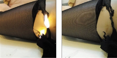 化纤成分无阻燃性,易燃。含棉的精梳棉连裤袜等服装是否不易燃烧?王继亮提醒,一般情况下,加棉成分的衣服更易燃烧。