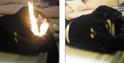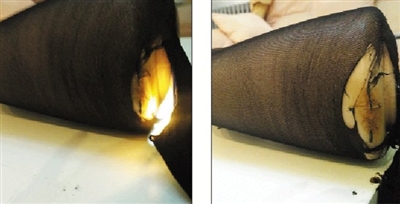 分析:王继亮分析,如果丝袜穿在人的身上,燃烧的速度会更快,而且两者具有附着性,连带燃烧。
