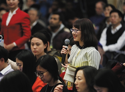 新京报记者苏曼丽在记者会上向发改委主任徐绍史提问。