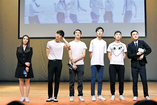 刘同(右一)、姚婷婷(左一)带着四个“小鲜肉”到大学城宣传新片