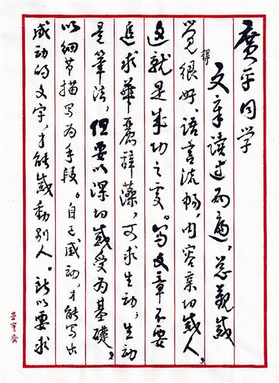 春节前后,我在报上发表了几篇散文,但总觉功力不够,尤其是文笔不够华丽精彩,遂将三份报纸寄给老师,请他指正。没想到老师仍像60多年前批改我们作文那样,在报纸上用红笔把错别字和标点符号逐一标出,对遣词造句不当处进行了纠正。老师那封内容深刻、见解独到的像字帖般的亲笔信更让我如获至宝。