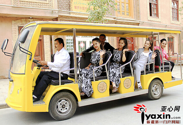 维吾尔族姑娘游老城。亚心网记者张磊摄
