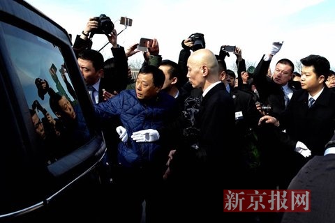10时10分许,面色憔悴的葛优手捧父亲遗像,8人抬着遗体,缓步走向灵车,亲人与家人的哭声不绝于耳,令人动容。