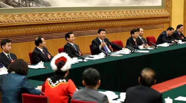 2015年3月8日,中共中央总书记、国家主席、中央军委主席习近平来到人民大会堂广西厅,与广西代表团代表共商国是,共话发展。