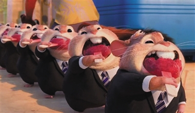 在巧匠打造的动物乌托邦里,我们看到的大象、长颈鹿、河马和兔子全都是符合现实尺寸的,这种设置帮助了观众代入,从穿着和语言,到税收制度和办公模式,都颇似人类。从“雷曼兄弟”走出来的银行仓鼠,排着齐整的队伍,顺序转弯,人手一只棒冰,都像极了在讽刺现实中的盲从。
