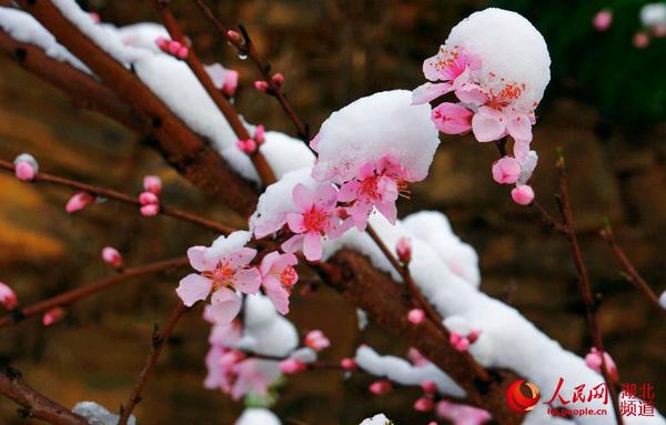 人民网宜昌3月11日电 3月10日清晨,三峡富裕山桃花山上呈现罕见桃花雪,大雪再次把这里装扮成如诗如画的“北国”风光,大地一片雪白,银装素裹分外迷人。当日太阳升起,桃花上的雪很快融化,摄影人抢拍少见美景。(望作信)