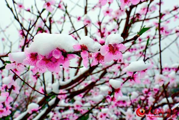 人民网宜昌3月11日电 3月10日清晨,三峡富裕山桃花山上呈现罕见桃花雪,大雪再次把这里装扮成如诗如画的“北国”风光,大地一片雪白,银装素裹分外迷人。当日太阳升起,桃花上的雪很快融化,摄影人抢拍少见美景。(望作信)