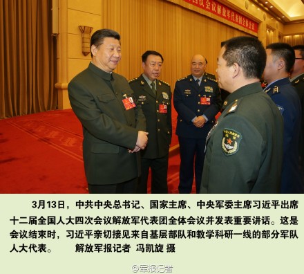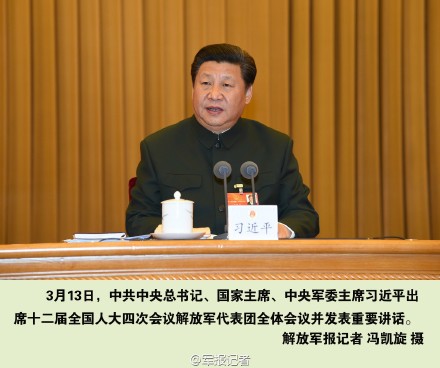 习近平出席解放军代表团全体会议并发表讲话(图)