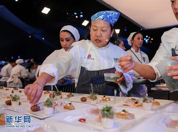 当日,5位亚裔名厨在2016洛杉矶经典全明星厨师厨艺大展的“东西方之夜”上为现场200余名民众奉献精美的东西方合璧大餐,这是该活动首次开设亚洲特色的美食专场。本届厨艺大展于3月9日至12日举行,包括中、法、美、西四个菜系的40余位名厨参与,每日有超过200人现场品鉴各类菜肴。新华社记者张超群摄