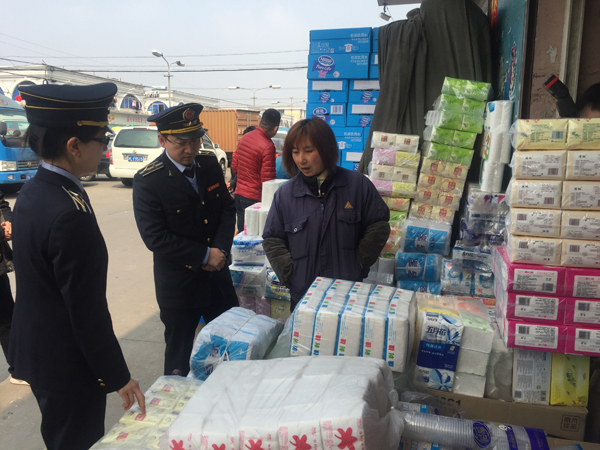 执法人员扣押20余万包问题面巾纸
