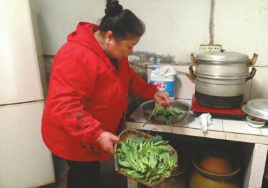 吴玉仙忙着为两个孩子做午饭。