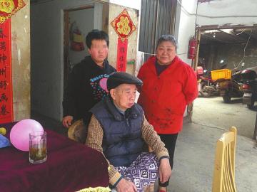 吴玉仙夫妇和收养的智障孤女。