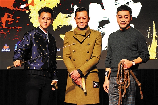 彭于晏、古天乐、刘青云各执片中武器登场