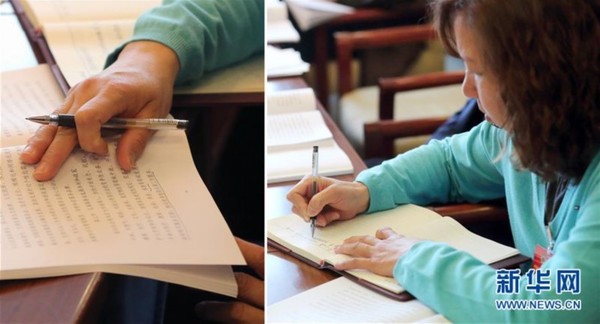 全国政协委员韩爱萍在小组讨论中读文件,做记录。在十二届全国人大四次会议和全国政协十二届四次会议上,代表委员们依法履行职责,积极参政议政;工作人员全力服务保障;编辑记者做好宣传报道。大家同心协力,真抓实干,为成就梦想努力。新华社记者殷刚 摄(拼版照片)