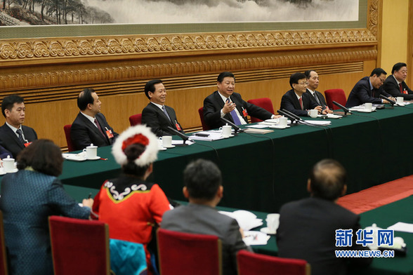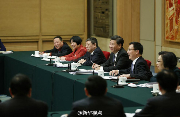 3月8日,中共中央总书记、国家主席、中央军委主席习近平参加十二届全国人大四次会议湖南代表团的审议。(新华社“新华视点”微博报道)
