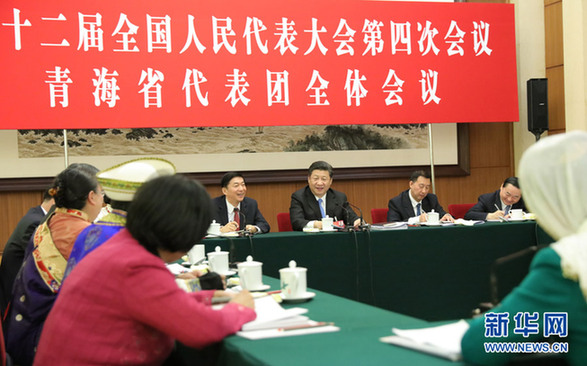 3月10日,中共中央总书记、国家主席、中央军委主席习近平参加十二届全国人大四次会议青海代表团的审议。(新华社“新华视点”微博报道)