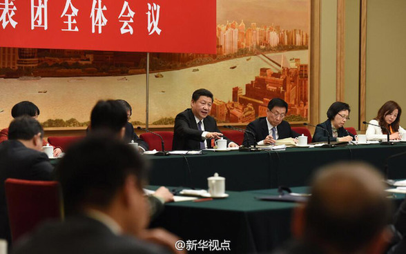 3月5日,中共中央总书记、国家主席、中央军委主席习近平参加十二届全国人大四次会议上海代表团的审议。(新华社“新华视点”微博报道)