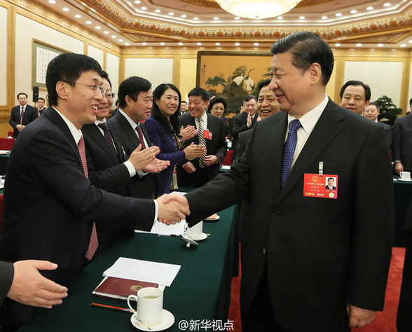 3月8日,中共中央总书记、国家主席、中央军委主席习近平参加十二届全国人大四次会议湖南代表团的审议。 新华社记者兰红光摄