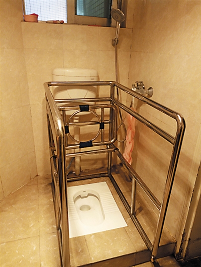 第二天“早上8点过,马师傅就来了。”大概一个半小时之后,马师傅就把修好的架子(如上图)送到刘大爷的家里。看到修好的架子,刘大爷很激动,“我洗澡、解手都靠它啊,如果没有你们我真的不晓得找哪个,好感谢他们哟!”