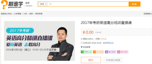 3月16日,商志老师的考研课程破万人,马上引爆围观效应,而这一切,仅仅用了3天时间。当晚,在线峰值8000多人,许多同学都热情地给商老师“送饮料”。