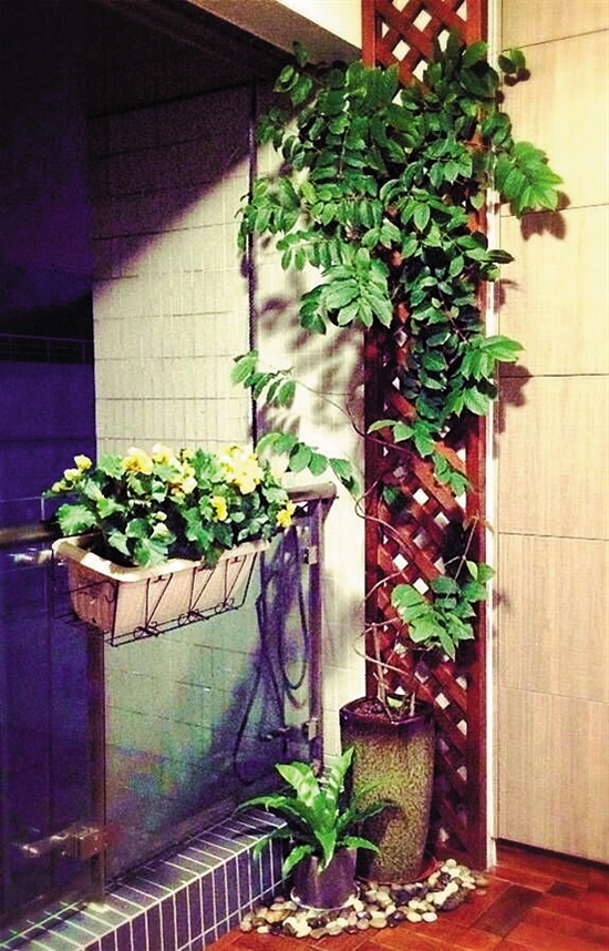 春花园总经理董灼杰说,近几年,家居种植的攀藤植物比较流行的有紫藤、使君子(水君子)、金银花和炮仗花。它们均可入药,大部分都有花香,易生长,对种植要求不高,在家居园艺上应用较广,可用于棚架、小桥、绿门、花亭、墙面、棚栏、屋顶、阳台、山石、挡土墙等处的绿化和装饰。